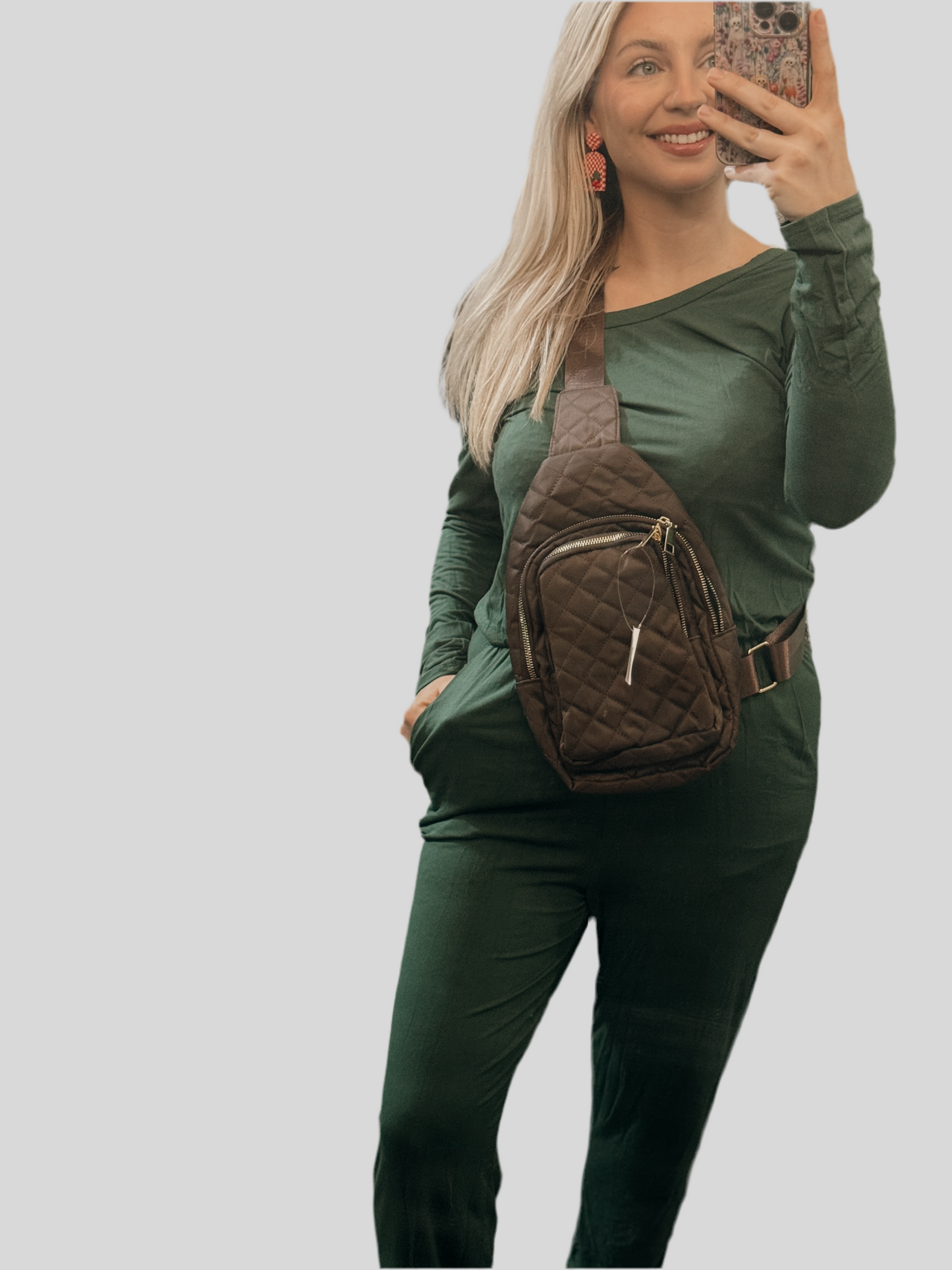 Forest green longsleeve elastic band jumpsuit